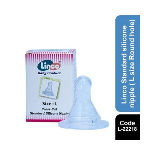 The Linco Standard Silicone Nipple L Size Round Hole (L-22218) is crafted for comfort and reliability during feeding. Made from high-quality, BPA-free silicone, this nipple ensures a soft, natural feel that mimics breastfeeding. Its round hole design provides a smooth and controlled milk flow, ideal for babies who require a larger nipple size.